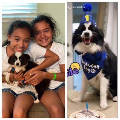Double trouble. Thanks to Ms. Pitsoulakis for sharing this picture of her beautiful girls and pups with us. Bamm Bam and Dino, her second Tiny Aussie. Couldn’t ask for a better home for these guys. It’s obvious what a great mom she is to her girls snd these puppies.